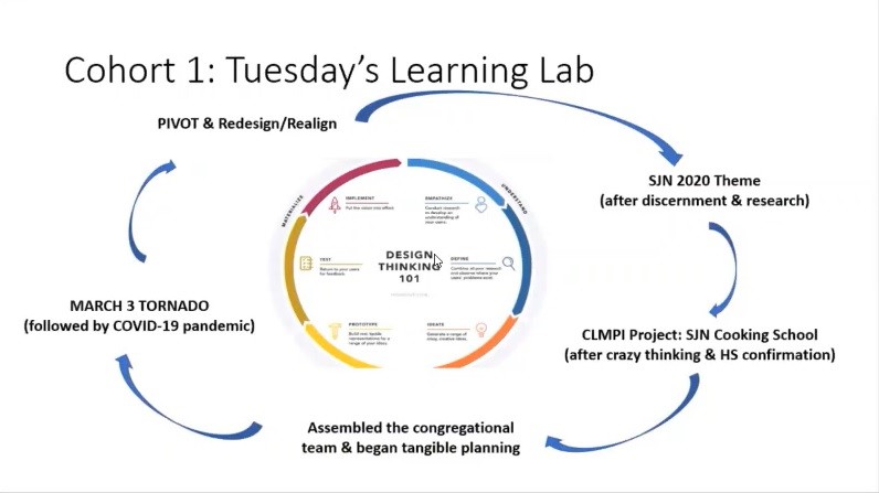 The design thinking process encompasses so much of what St. John AME has experienced working through the effects of the tornado and the onset of COVID-19. After a few years of discernment and research, the congregation was poised to open a cooking school in their church building for youth in the neighborhood. The cooking school would have served as both training for the youth to work in restaurants, and to help them connect with available jobs.